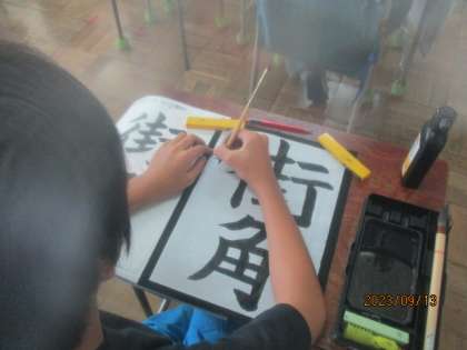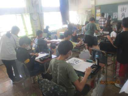 9月13日(水)6年生が、2クラスとも習字をしていました。筆を持ち、紙と向き合う姿を見ると、きりっと引き締まっていて、みんないい顔をしていました。学習では、パソコンや電子黒板の画面を見ることも増えましたが、墨を使い、筆で字を書くということも大切にしていきたいものです。