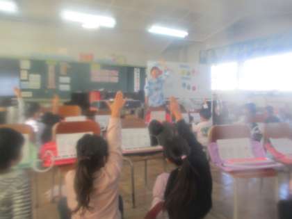 11月9日 (木)1年生が音楽室で音楽の授業をしていました。手拍子で様々なリズムに親しんだ後に、鍵盤ハーモニカの練習をしました。旋律をつなげてグループで4分の4拍子、4小節の音楽を作ります。出す音は自分で決めます。今回は、グループでの演奏には至りませんでしたが、何人かの子どもたちが自分のリズムを発表していました。