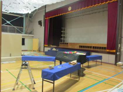 11月14日(火)前日の15日(月)の6時間目に、6年生が教職員と一緒に体育館で会場の準備を行いました。これから作品が展示され、いつもの体育館が展覧会の会場へと様変わりします。本番を楽しみにしていてください。