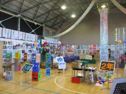 11月21日(火)平面作品の展示終了後の体育館の様子です。本日、立体作品の展示を行い、展覧会に向けての準備をさらに整えていきます。