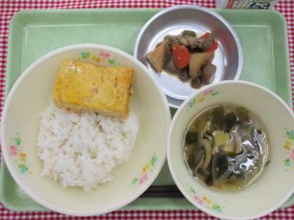 給食のスープや汁物の出汁もかつお節や昆布などでとっています。今日は、かつお節とこんぶで出汁をとった「秋のお吸い物」をいただきます。世界の『UMAMI』を味わってみましょう。