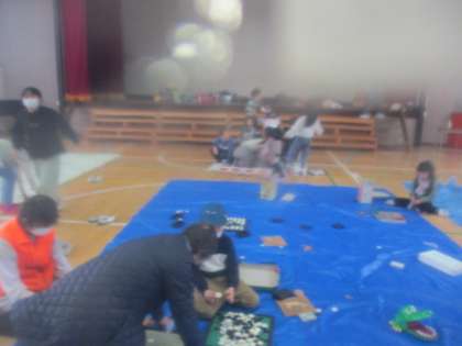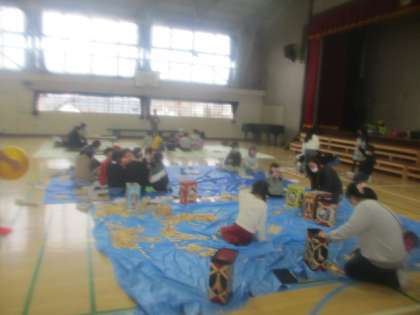 2月14日(木)放課後、体育館であそびランドを行いました。各学期に1回のこの活動を、子どもたちはとても楽しみにしています。低学年から高学年まで、みんな歓声を上げながら様々な活動を楽しんで行っていました。
