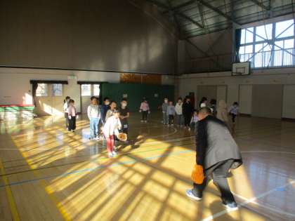 2月26日(月)この日は、1年生が大谷選手のグローブを使ってのキャッチボールをしました。普段使わないグローブをはめてのボールキャッチは、1年生にとっては、なかなか難しい部分もありましたが、みんなで楽しく取り組めました。
