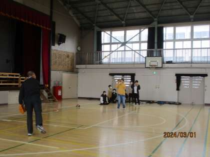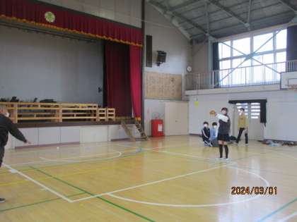 3月1日(金)朝、体育館で6年生が大谷選手のグローブを使って、キャッチボールを行いました。グローブをはめて投げたり、捕ったり、子どもたちは楽しそうに運動しました。