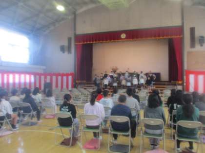 3月21日(木)体育館で5年生と1年生が、それぞれ、卒業式と入学式の練習を行いました。なぜそうなったかというと、互いの練習を見合うためです。1年生が5年生の練習の様子を真剣に見ている姿が印象的でした。