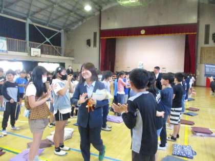 4月19日(金)5時間目に離任式がありました。3月で第八小学校を去られた職員に、子どもたちが用意した手紙と花束をお渡ししました。この日は4名の先生が来てくださいました。代表の子どもたちが手紙を読み、花束を渡してから、お一人ずつからお別れの言葉をいただきました。そのときまでは、子どもたちは、比較的落ち着いた感じでしたが、式が終わって先生方が退場する際には、涙を流して別れを惜しむ子がたくさんいました。去られた職員の皆様、いつまでもお元気でお過ごしください。