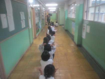 4月23日(火)廊下に2年生が並んでいました。この日は、2年生と6年生の内科検診がありました。まっすぐ静かに並べているので、「上手だね。」と声をかけると、座ったままさらに背筋をピンと伸ばしていました。