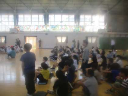 4月25日(木)朝の時間に委員会紹介集会をしました。舞台の上に各員会の代表の6年生が1〜2名乗り、委員会の活動内容やメンバーの紹介、みんなへのお願いなどをしました。委員会活動は、クラブ活動とは違い、学校の中の仕事を分担して、子どもたちが学校の運営に関わる活動です。5・6年生の皆さん、(代表委員は4年生も)各員会の活動をしっかり行ってくださいね。