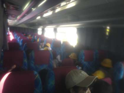 2月14日(火)バスは、昭和記念公園を出発しました。予定より少し遅れての出発です。1日遊んでくたびれたのでしょう、バスの中では寝る子もたくさんいました。