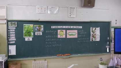 5月23日(木)1年生がそらまめの皮むきをしました。絵本の読み聞かせを行うなど栄養士も参加して、子どもたちの意欲を高めてから行いました。中から大きな豆が出てくると、子どもたちからも喜びの声が上がっていました。1年生が取り出したそらまめは、給食で提供され、全校のみんなでおいしくいただきました。