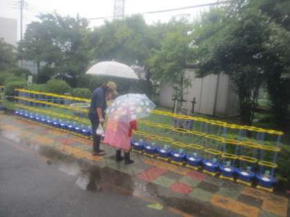 5月31日(金)朝から雨でした。傘を差しながら、朝顔をおもうちの人に説明している1年生がいたので、写真に撮りました。心温まる姿です。