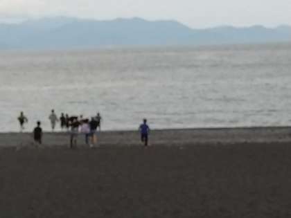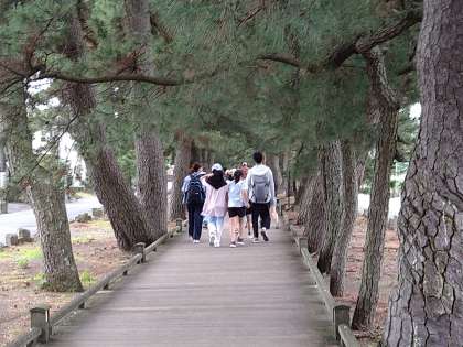 6月6日(木)宿舎「潮騒」に到着しました。荷物を置いて三保の松原の散策をしました。富士山は見えませんでしたが、少し砂浜でゆっくりしました。