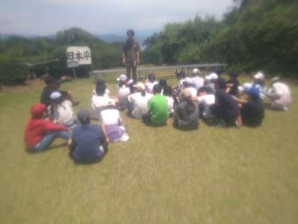 6月7日(金)お茶摘みとお茶もみの体験をするために、日本平に来ました。体験の前に、どうして静岡でお茶が栽培されるようになったのか、お話を聞きました。これから茶摘みをします。