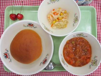 金時豆は、いんげん豆の仲間です。鮮やかな赤紫色のものと白色のものがあります。今回は、赤紫色の金時豆をゆでてから、ポークシチューに加えて煮込みました。