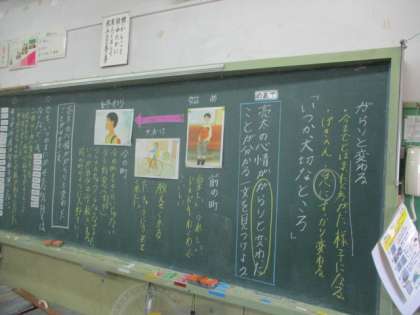 6月11日(火)5年生の教室で国語の授業をしていました。物語文の学習で、登場人物の気持ちが大きく変わったのはどこなのか、文章中の言葉を根拠に読み取り、意見を交換しました。主に二つの箇所があげられ、それぞれの理由を述べながら、話し合っていました。
