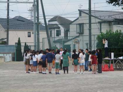 6月13日(木)この日の児童集会は、代表委員会の担当でした。たてわり班で、ボール送りゲームをしました。上から後ろに送ったボールを、下から前に送り返します。慎重に回しているグループもあれば、素早く回しているグループもあり、グループごとの特色が見られてほほえましかったです。今回は特に勝敗を競う形ではなく、一つのゲームに班のみんなで取り組み、親睦を深める会でした。みんな仲良く過ごすことができたのが、何よりでした。