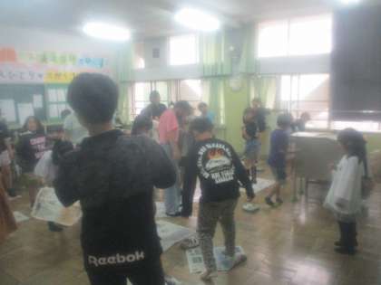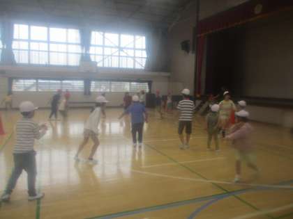 6月21日(木)昼食後、たてわり班活動の時間がありました。6年生が計画を立て、全体をリードしながら、みんなで遊びを楽しむ時間です。子どもたちは、たてわり班活動の時間を楽しみにしています。体育館や教室で、それぞれの遊びに興じていました。