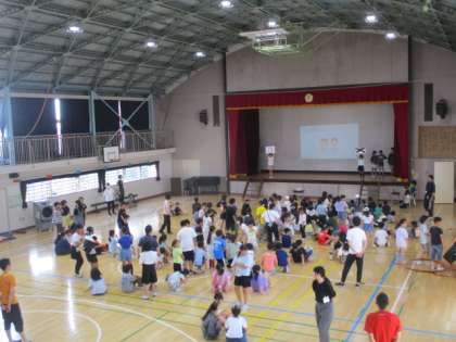 7月4日(木)体育館で児童集会を行いました。この日は、「木の中のリス」という仲間づくりゲームと○×ゲームをしました。○×ゲームは、今回はあえて少し難しい問題を交えて出しました。それだけに、正解を告げられるとみんな答えに一喜一憂していました。