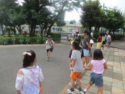 7月18日(木)この週から、あいさつ運動はたてわり班で行っています。当番の子どもたちは、自分の学年の子が通ると、特に大きな声であいさつしていました。
