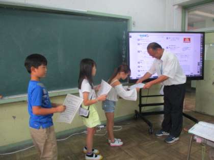 7月19日(金)昨年度から、学期ごとに八小俳句大賞を行っています。子どもたちに季節を感じながら、広く身の回りのことに関心をもって欲しいという願いを込めて行っています。言葉に対する感覚も養っていきたいと考えています。大賞作品の発表は、前日の18日(木)の送るの時間に行いました。この日は、入賞者、大賞者への賞状を渡しに行きました。みんなやっぱり嬉しそうです。