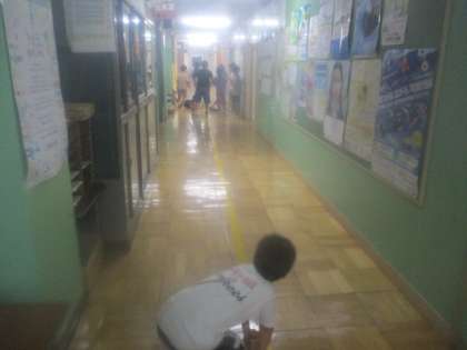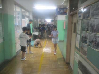 8月29日(木)算数の学習で3年生が廊下の長さを測っていました。メジャーを使って測った記録をつぎ足し、協力して作業を進めていました。実際の距離を感じながら長さについて理解することは、大切なことなのです。