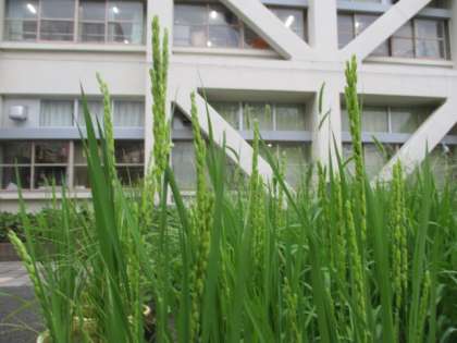 9月3日(火)5年生が植えた稲がすくすくと育っています。小さな白い稲の花が咲き、稲穂も固くなって、垂れ下がるものも出始めました。少し植えるのが遅かったので、心配していましたが、順調に育っているようです。