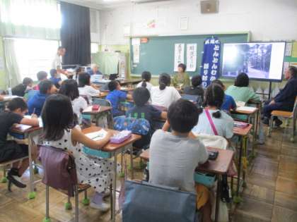 9月12日(木)「とんとんむかし語り部の会」の皆さんをお招きして、八王子市に伝わるお話をしていただきました。語り部の雰囲気を出すためにのぼりを用意し、皆さん衣装を着てお話をしてくださいました。子どもたちは、どんどん話に引き込まれていきました。八王子の歴史に触れながら、囲炉裏の回りでお話を伺っているような雰囲気の中で素敵な時間を過ごすことができました。語り部の会の皆さん、どうもありがとうございました。