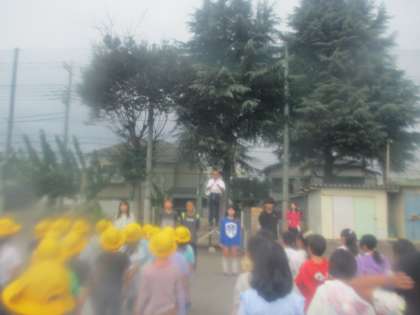 9月30日(月)校庭で全校朝会をしました。『〇〇の秋』の話と、交通安全の話をしました。この日までが秋の交通安全週間でした。道路を横断する際は、「車は来ないだろう」ではなく「車が来るかもしれない」と考えて行動することが大切であるという話をしました。「だろうではなく、かもしれない。」みんなで気にかけ、交通事故に遭わないように過ごしたいです。