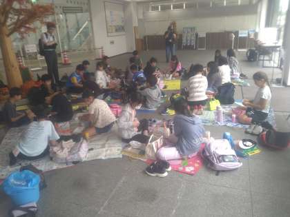 社会科見学(4年生)6 公開日 2024/10/01 更新日 2024/10/01 今日のできごと 10月1日(火)お昼は、有明客船ターミナルで食べました。少し雨が降っていたので、建物の中をお借りして食べました。この日は、写真やさんも来ていたので、ここで記念撮影をしました。お腹いっぱいになり、みんな幸せそうでした。 いいね(0)