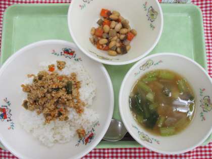 大豆は、豆類の中でもたんぱく質が豊富で「畑の肉」と呼ばれています。今回は、にんじん、ごぼう、こんぶなどと一緒に煮た「五目煮豆」としていただきました。