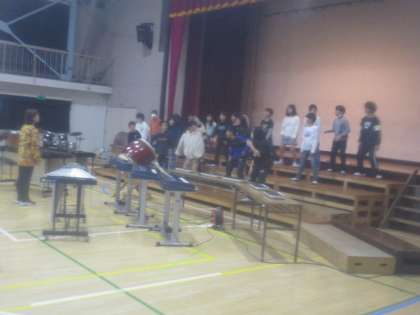 11月15日(金)現在、子どもたちは、音楽会に向けて、立つ位置を確かめるなどしながら練習を重ねているところです。写真は3年生と5年生の練習の様子です。あと、2週間、他教科の授業と並行して、少しずつ準備を進めていきます。