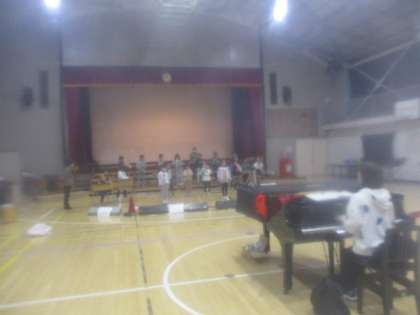 11月18日(月)先週もお伝えしましたが、音楽会に向けて体育館での練習が始まっています。写真は、2年生と4年生の練習の様子です。各学年、演奏に使うものを手に持ったり、動きや振りを付けたりしています。場所の移動をしながら、素早く動く練習もしています。