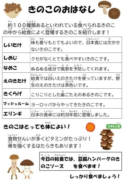 豆腐と豚ひき肉等でつくったハンバーグに、えのきたけ・しめじを使ったきのこソースをかけていただきました。