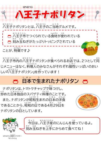 八王子ナポリタンは、八王子のご当地グルメです。ミルクパンに八王子ナポリタンをはさんで食べたり、そのまま味わったり、それぞれ楽しんで食べていました。