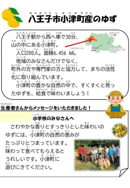 八王子市小津町でとれたゆずを使って、さわやかな香りがする和え物をつくりました。