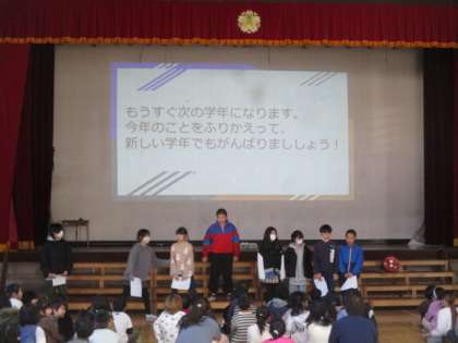 2月6日(木)朝、児童集会がありました。集会委員会が主催する本年度最後の集会活動でした。始めに、1年間を振り返ってのクイズをして、その後で「猛獣狩りゲーム」をしました。みんなで仲良く過ごして、体育館が温かい雰囲気に包まれました。集会委員会の皆さん、1年間素敵な集会をありがとう。