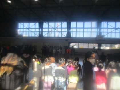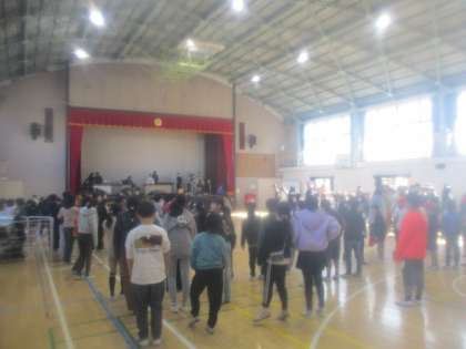2月19日(水)中休みの時間を利用して全校児童が体育館に集い、翌日に予定している音楽集会の練習を行いました。ストーブで暖を取りながら、子どもたちの元気な歌声が体育館に響きました。