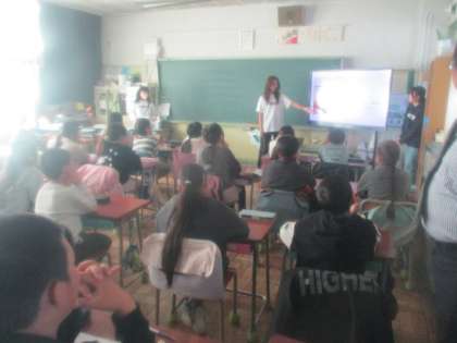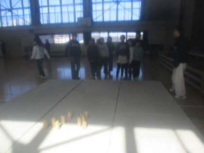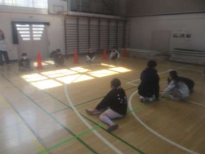 2月21日(金)4年生が障害者スポーツの体験をしました。上智大学の学生さんが10名ほどで学校を訪れ、3時間目に共生社会についてのお話を4時間目に体育館でモルックとゴールボールの体験をしていただきました。アイマスクを付けて行ううゴールボールでは、音とゴールラインの線を頼りに子どもたちは運動に取り組みました。大学生の方が丁寧に教えてくださり、子どもたちは貴重な体験をすることができました。上智大学の皆さん、ありがとうございました。