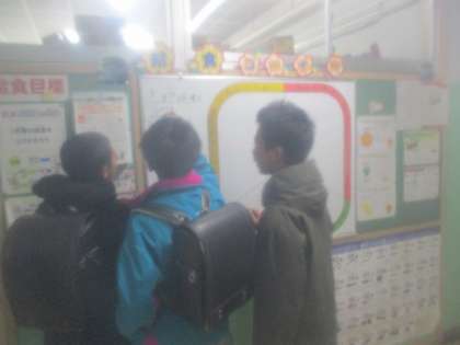3月7日(金)登校後、給食の献立や栄養素を示す給食掲示板に、6年生が献立のメニューを書き込んでいました。給食は子どもたちの楽しみの一つでもあります。通りすがりにメニューを見る子も多く、忘れずに仕事をする6年生はえらいねと、感謝の気持ちを伝えました。