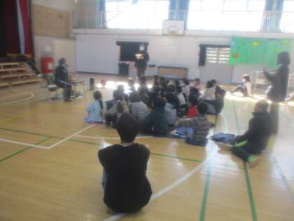 3月7日(金)盲導犬と生活を共にする視覚障害者の方から3年生が話を伺う機会をもちました。場所は体育館で行いました。子どもたちから事前に聞いておいた質問などに答えながら話していただけたので、子どもたちも聞き入っていました。やはり気を遣うのは、外出時だそうで、八王子は斜めの道が多いとおっしゃっていました。盲導犬は、終始おとなしく、全体の会が終わり何人か残っていたときには、ハーネスを外してなでさせてもらいました。子どもたちの心に残るお話や体験をさせていただき、ありがとうございました。