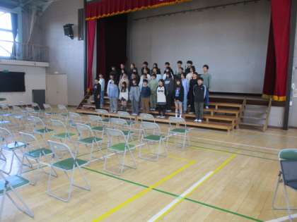 3月10日(月)卒業式に向けて体育館の練習が始まっています。立ち位置を決め、声の出し方なども伝えていきます。真剣に練習に参加する6年生の姿が見られます。