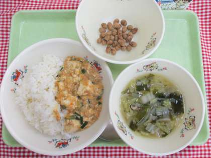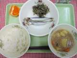 豆黒糖は、いり大豆に黒砂糖と水を煮詰めた黒蜜を絡めてつくります。豆が苦手な子も「おいしい」と笑顔で食べられる給食の豆料理です。