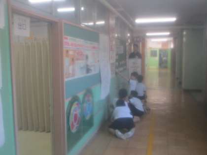 5月13日(火)1年生と3年生の内科検診がありました。写真は、廊下で順番を待つ子どもたちの様子です。聴診器で小さな音を聞くので、おしゃべり厳禁なのです。