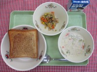 *献立*セサミトースト白菜のクリームスープカリカリじゃこサラダ牛乳☆きょうの八王...