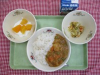 *献立*ナンバターチキンカレー野菜のアチャールいちご牛乳☆きょうの八王子産☆人参...