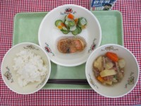 *献立*ごはんすき焼き風煮物野菜のおかか和えごまめ大豆牛乳☆きょうの八王子産☆小...