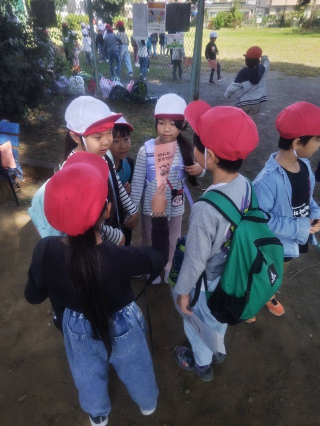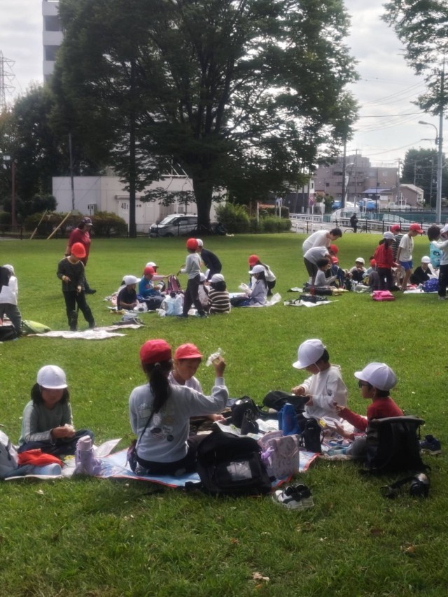 10月10日(金)1・2年生は、生活科見学で中野町公園や遺跡公園に行きました。事前に公園を訪れて準備した2年生が、1年生の手をつないで案内したり、1年生にクイズを出題したりと大活躍でした。一緒に遊んだり、仲良くお弁当を食べたりととても楽しそうでした。お弁当のご準備をしてくださった保護者の方々、子供たちの安全を守ってくださった交通安全ボランティアやサポーターの方々、ありがとうございました!