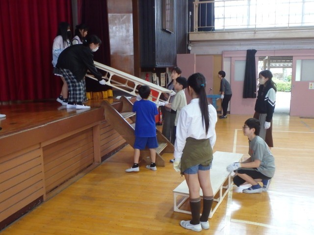 10月14日(火)6校時に6年生が学習発表会の準備に取り組みました。舞台や道具、椅子など、協力して学校のために働き、さすが第九小の6年生!という姿を見せてくれました。6年生のがんばりを見て学習発表会がますます楽しみになりました!6年生、学校のためにありがとう!