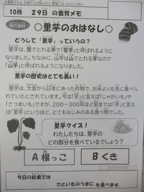 10月29日給食