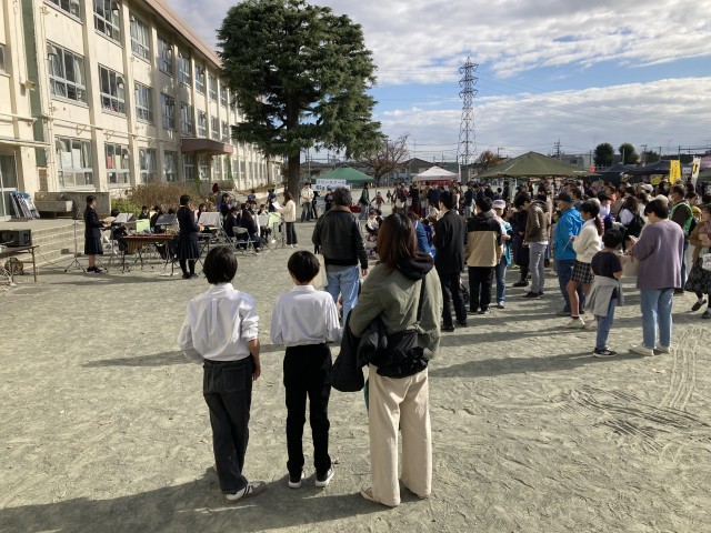 11月29日(土)気持ちのいい青空のもと、校庭で第九小けやきマルシェが行われています。キッチンカーやお店、福祉など、ご賛同いただいた方々にご出店いただき、子供たちや保護者・地域の方々が交流しています。二中の吹奏楽部の演奏や教員のダンスなどの催しもあります。出店者もボランティアさんも訪れたみなさんもみんな笑顔ですてきな時間を過ごされています。ありがとうございます。15:30までやってきますので午後もたくさんの方々に訪れていただけたらと思います。